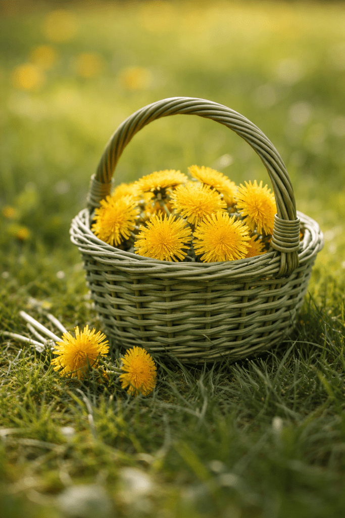 By the time I brought my basket home, the dandelions had left their yellow dust on my fingers — and on my nose.